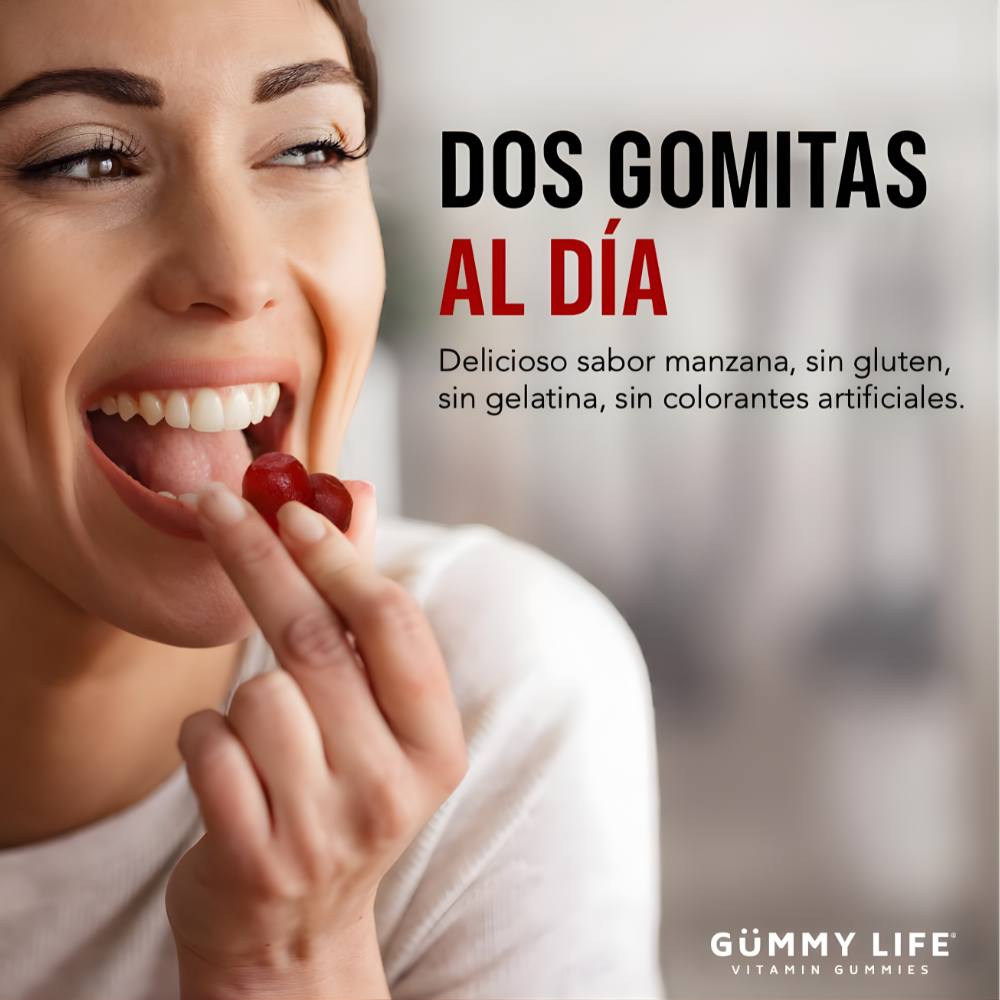 Consumir 1 a 2 gomitas al día, preferentemente con alimentos o según indicación de un profesional de la salud.