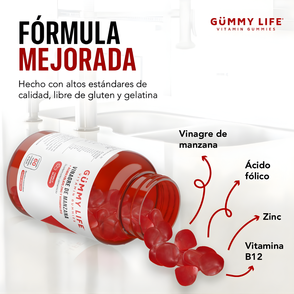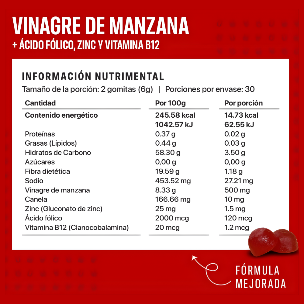Las Gomitas de Vinagre de Manzana con Vitamina B12 y Ácido Fólico son una forma práctica de incorporar este ingrediente tradicional en tu rutina diaria.